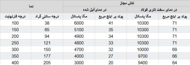 در جدول زیر جدول تحمل فشار لوله های فولادی را می توانید مشاهده نمایید: